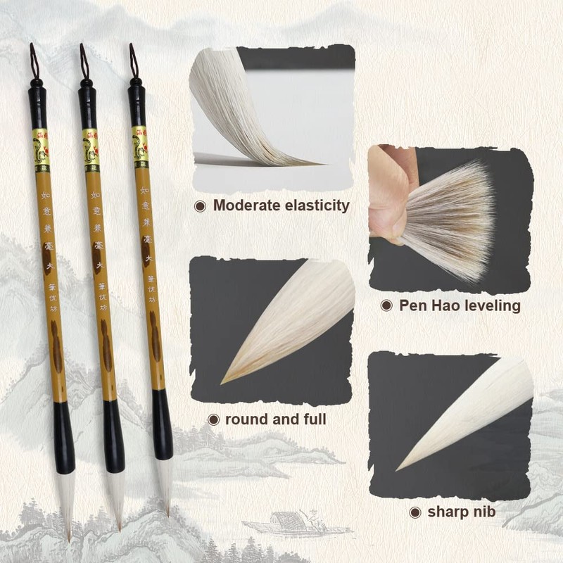 - Exquisite Workmanship: The Chinese writing brushes are made of high-quality hair, with a cap design, the color is consistent, the ink absorption is excellent. All handmade, and the pen shaft is firm.