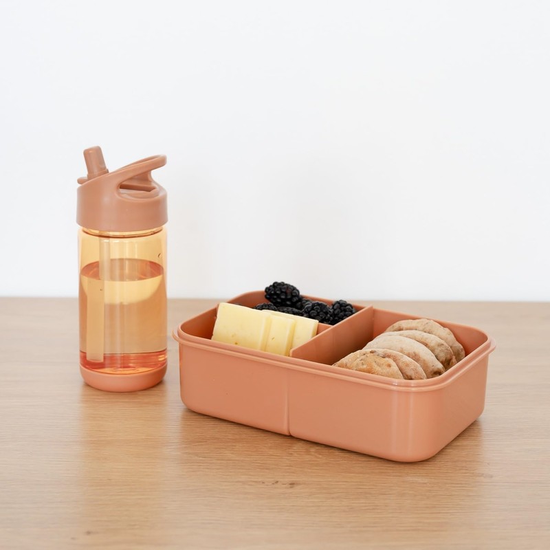 3 Sprouts - Bento Box for Children - Lunch Box with Compartments, Lunch Box for School and Nursery - Recycled Plastic Box for Children - Rust