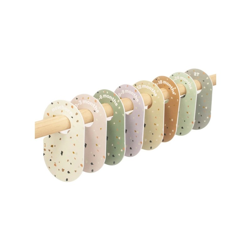 Keep your child's closet organized with the 3 Sprouts Closet Dividers. This 8-piece set includes dividers with sizing from newborn to 2T. Made to fit standard closet rods as well as wire shelving. With labels printed on both sides, storing, organizing and finding your child's clothes quickly is easier than ever!