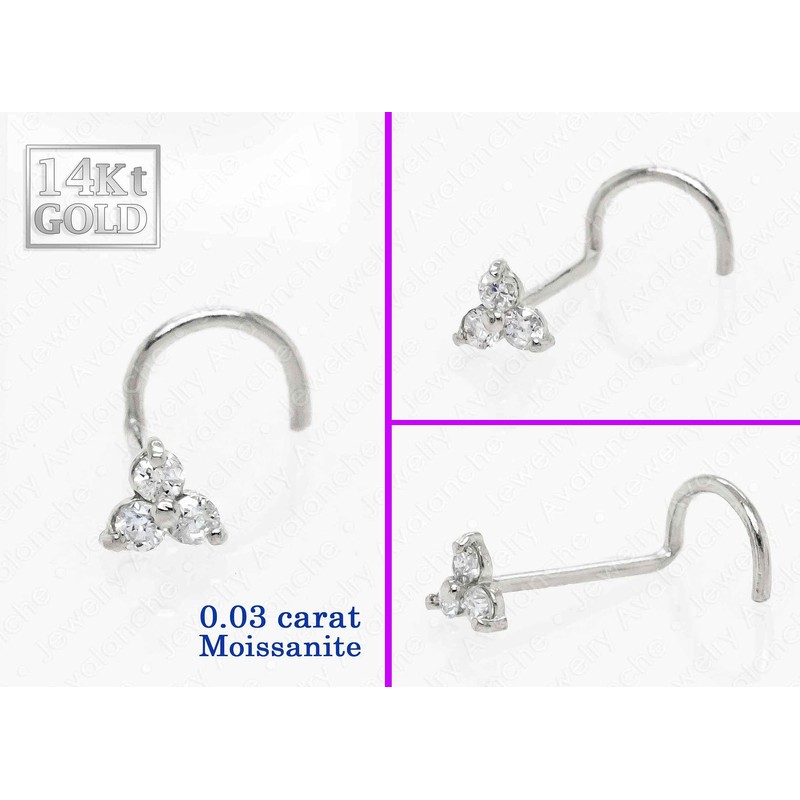 - This listing is sold per 1 piece of Solid 14Kt Yellow Gold or 14Kt White Gold Nose Screw or L-shape or Nose Bone Stud. Each style have a 0.030 carat Moissanite Gemstones.