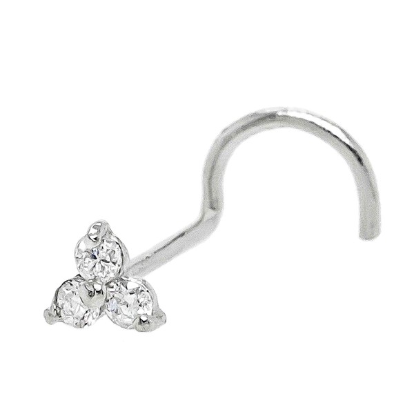 3-Stone 0.030ctw Moissanite Nose Stud - 22G Solid 14Kt Gold Nose Bone/L-Shape/Nose Screw Stud Nose Ring - April Birthstone Nose Stud, Metal, moissanite