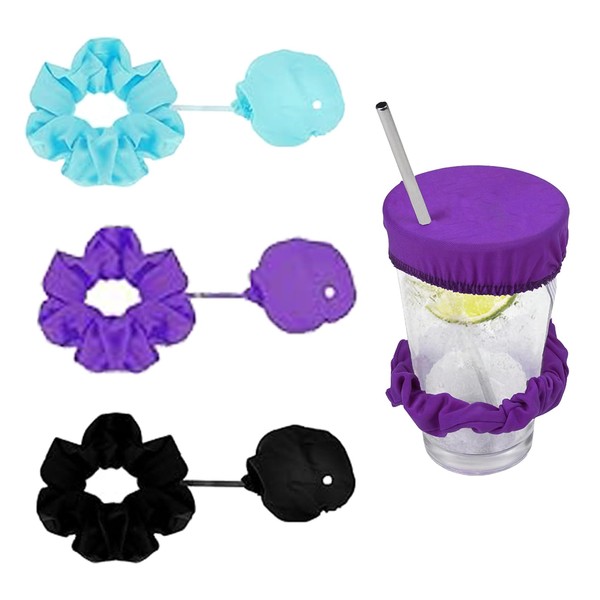 - 3er-Set stylischer Drink-Schutzhauben: Das praktische Set enthält 3 farbenfrohe Getränkeschutz-Covers in Schwarz, Violett und Azurblau. Die elastischen Polyester-Abdeckungen passen sich den meisten Bechern und Gläsern an und dienen gleichzeitig als modisches Haarband - perfekt für unterwegs!