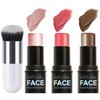 3 Stück Kontur Stick Make up Kit, Contour Highlighter Blush Sticks mit Pinsel...