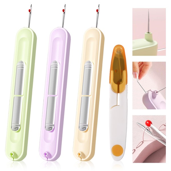 3 Stück Steckbarer Nadeleinfädler, Multifunktional 2 in 1 Nadeleinfädler Nahttrennwerkzeug mit Kleiner Schere Entferner Nadeleinfädelwerkzeug Geeignet zum Stricken,Basteln, Handnähen