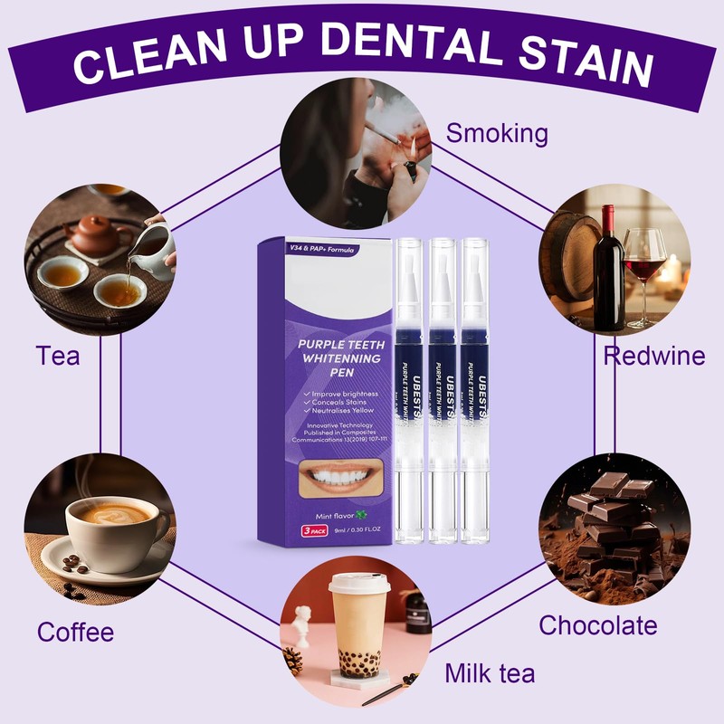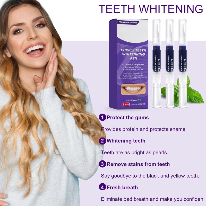 3 Stück Stifte zur Zahnaufhellung, Teeth Whitening Pen, Violetter Teeth Whitening Pen, Entfernt Verfärbungen effektiv, Für strahlend weiße Zähne, Einfache Anwendung mit präziser Bürste