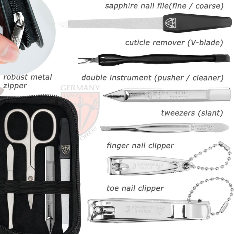 - NAIL CARE KIT from 3 Swords Germany with professional manicure and pedicure tools. Our sets for home and travel use convince trough highest levels of quality, modern design, durability and German engineering combined with a first class customer service.