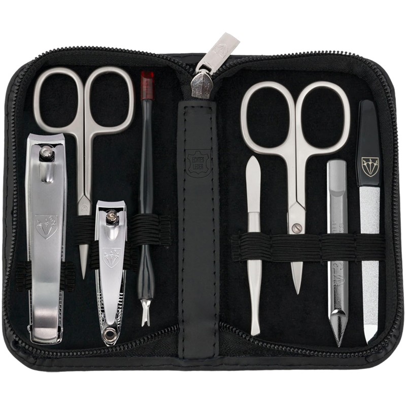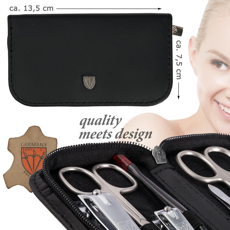 3 Swords Germany - brand quality 8 piece manicure pedicure grooming kit set for professional finger & toe nail care scissors clipper genuine leather case black in gift box - Made by 3 Swords
