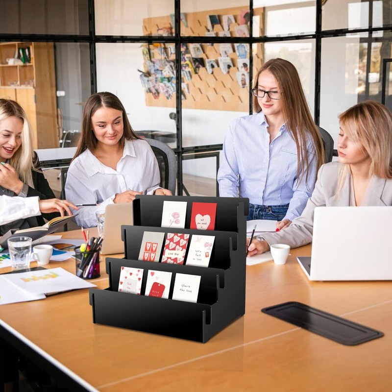 3 Tier Black Acrylic Greeting Card Display Stand Greeting Card Organizer Postcard Display Rack Sticker Display Stand Card Display Shelf Retail Display Stand for Craft Show Vendors Event Counter Table