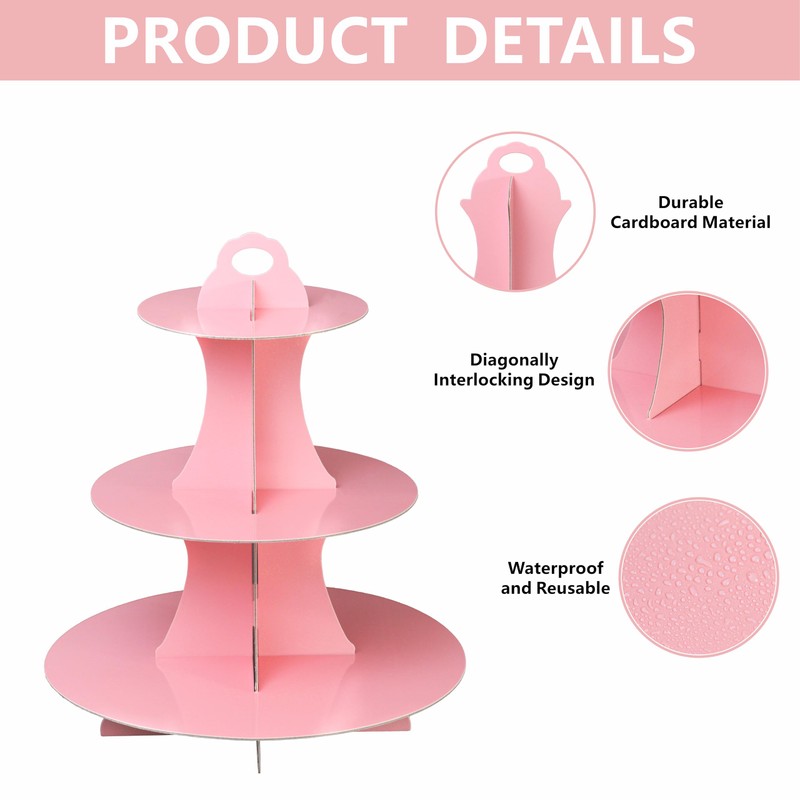 - 3 Tier cardboard cupcake stand can not only hold cupcakes, but also serve as the perfect stand for snacks and pastries, such as chocolate, macarons, etc.