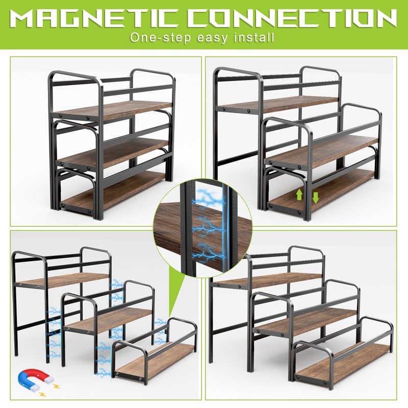 - đăMagnet Connection & Easy AssemblyăYou don't need to spend time installing the syrup organizer with screws , the display rack contains 3 completed parts which connect to each other with magnet.