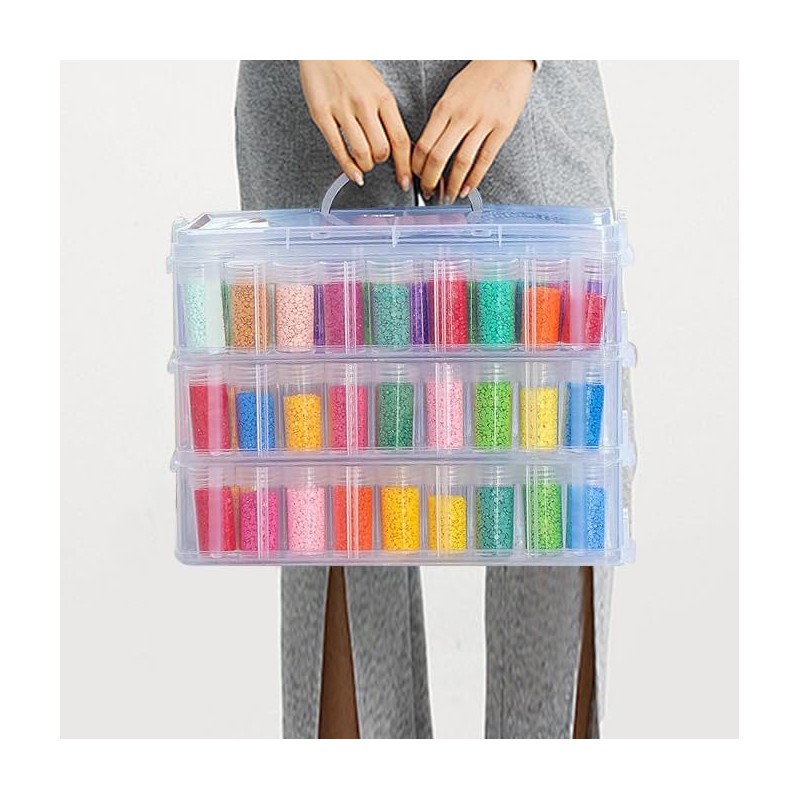 3-Tier Diamond Painting Storage Container, 150 Slots Portable Bead Organizer Box, Stackable Crafts Organizers for DIY Diamond Art Craft Jewelry Bead Storage