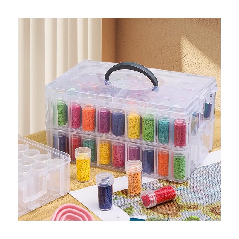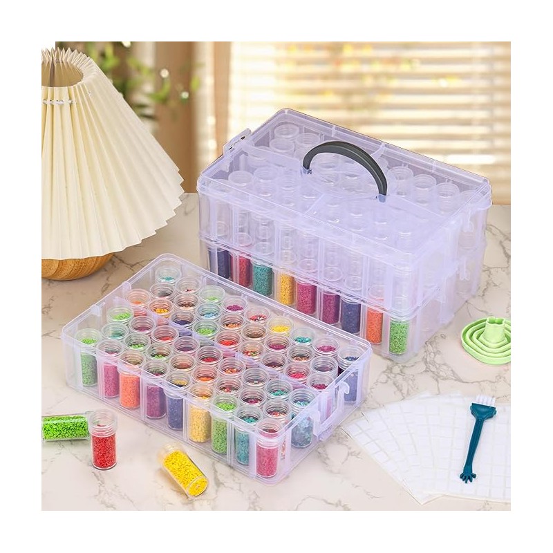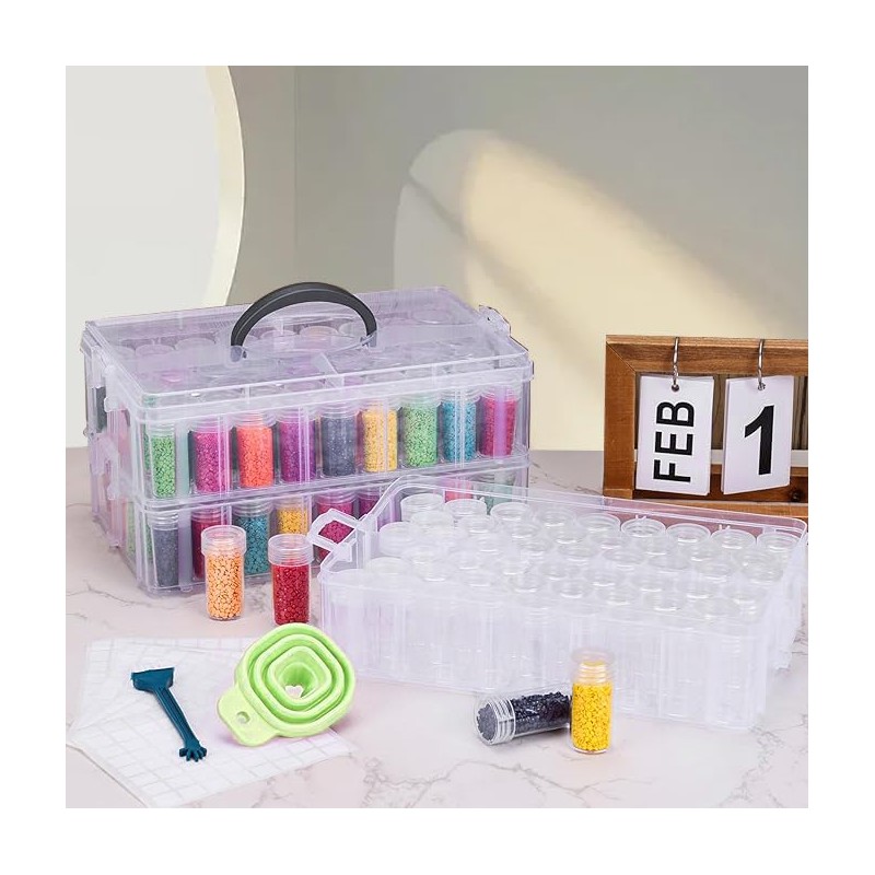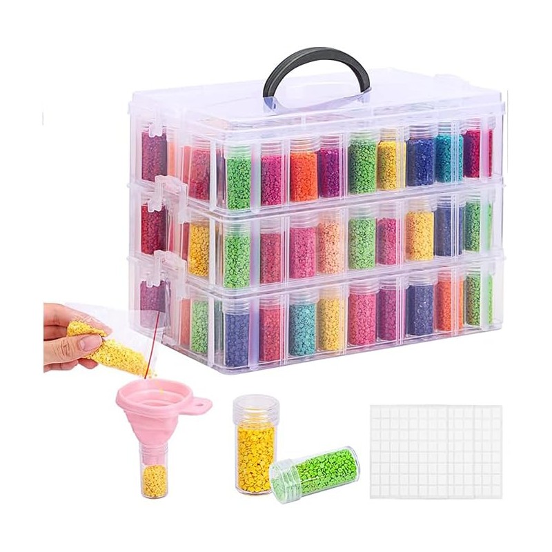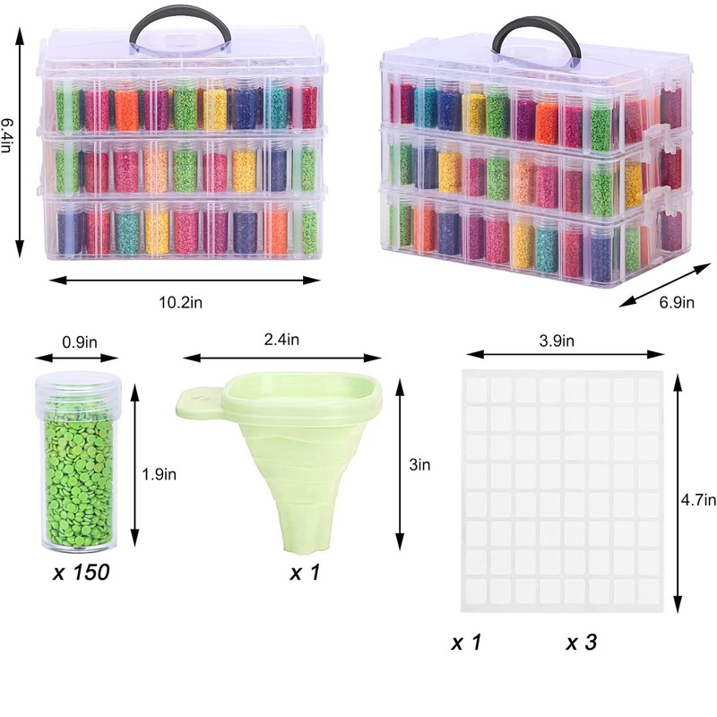 - All-in-one Package: This diamond painting accessories kit contains 3 clear stackable boxes, 150 round storage bottles and foldable silicone funnel.
