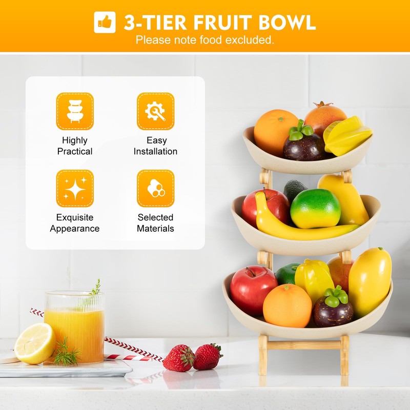 - Sturdy Bamboo Frame – Crafted from high-quality bamboo with excellent load-bearing capacity, this sturdy frame supports heavy fruits and snacks without wobbling, while complementing your kitchen with a natural look.