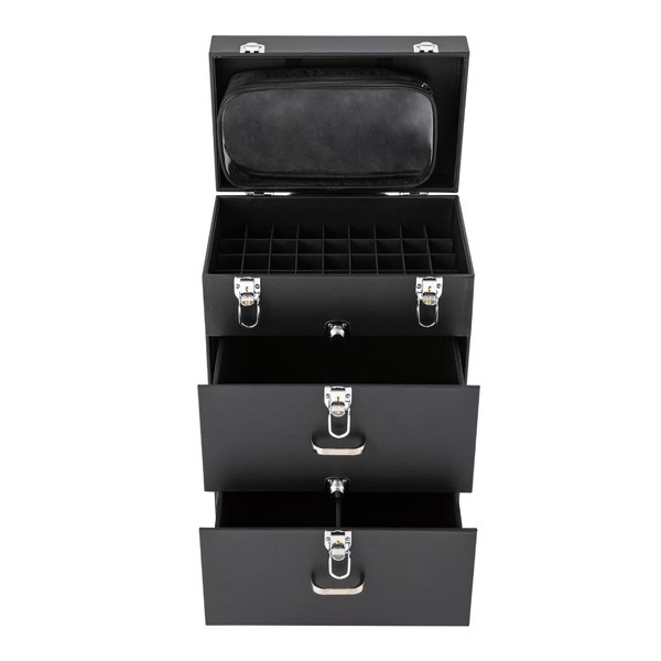 3-Tier Rolling Makeup Train Case with 2 Drawer,Lockable Makeup Trolley Case,Multi-functional Makeup Traveling Trolley,Black