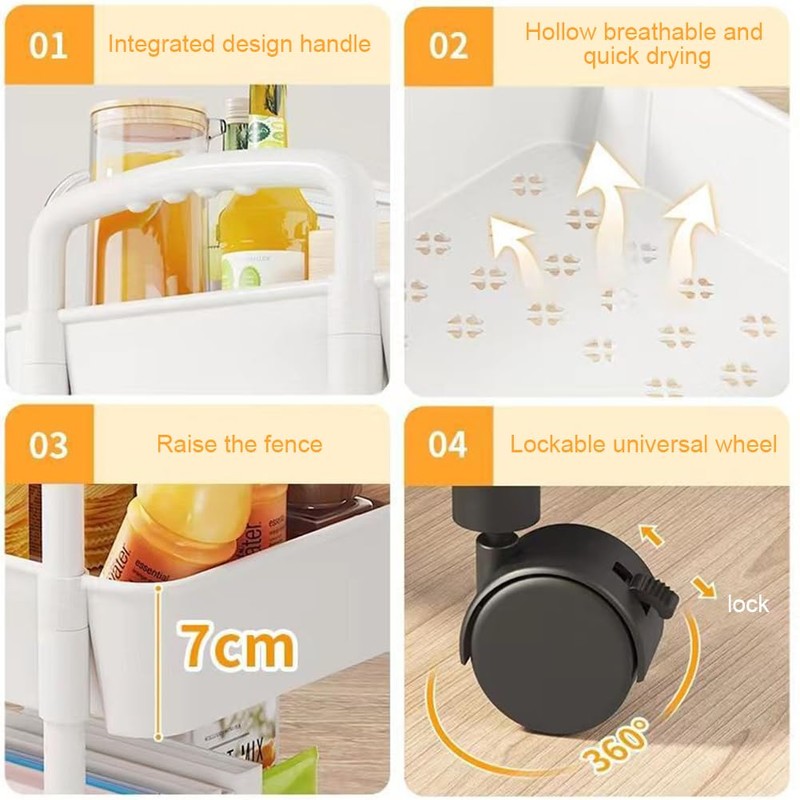 【Hollow Design】The hollow design of rolling storage trolle ensures air circulation and prevents stagnant water and odor. Keeps fruits and vegetables fresh and easy to clean.