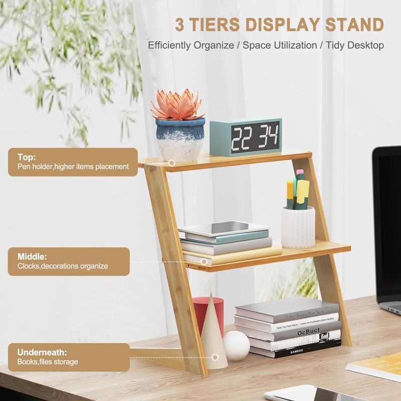 - 【Versatile Application】Natural bamboo plant stand with a varnish painting surface serves not only as a flower pot stand but also as a tabletop shelf, display shelf, office bookshelf, cake stand, kitchen spice rack, coffee stand, cosmetics stand,decorative stand, windowsill extender shelf and exhibition stand, efficiently organize the desktop from clutter . Easy to clean and maintain