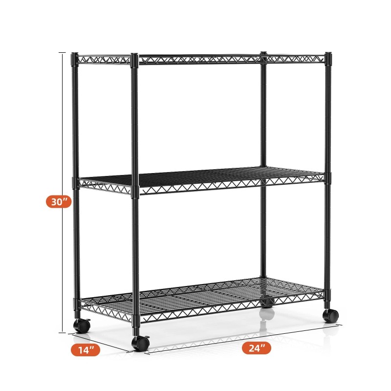 3-Tier Storage Shelves Shelving Unit for Pantry Garage and Kitchen Black 2 Pack