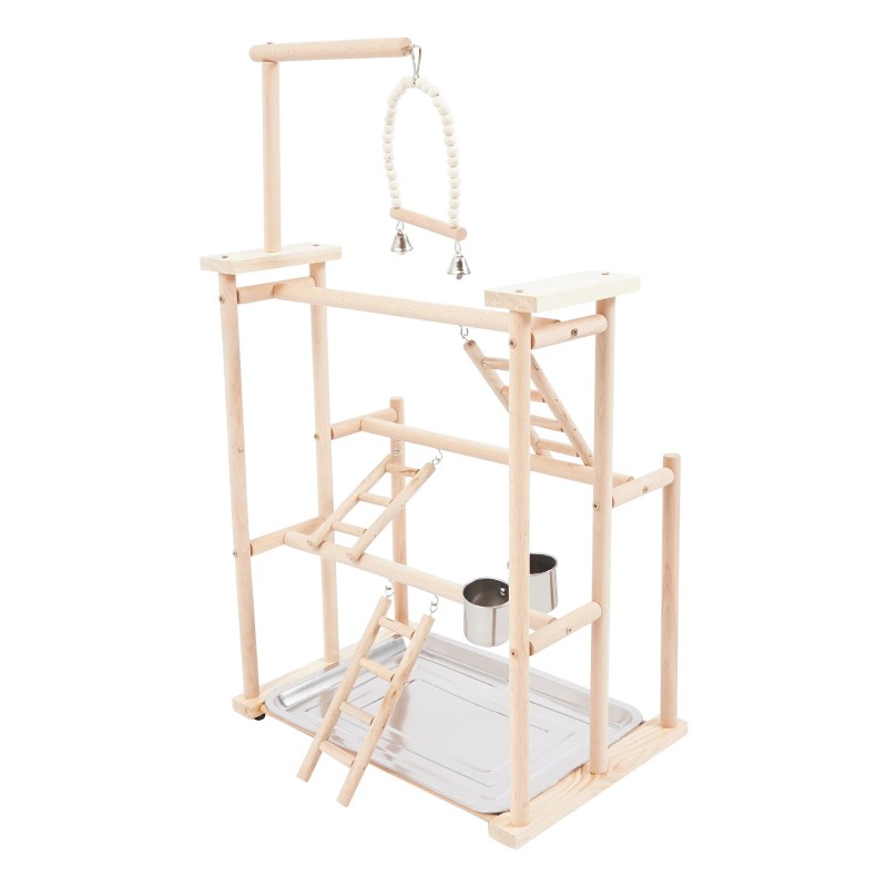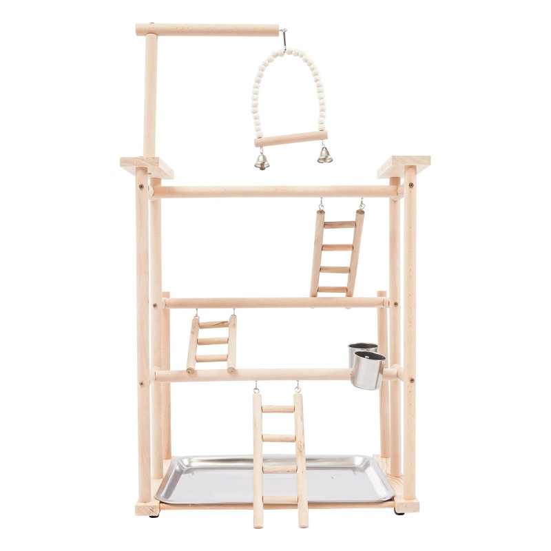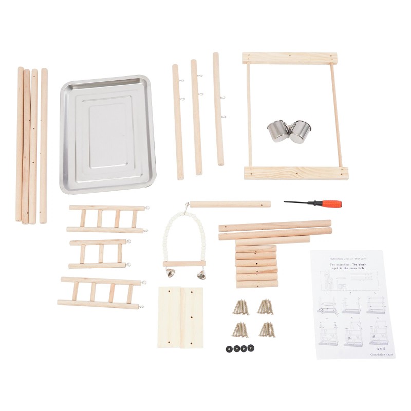 Thoughtful Design: It comes with many perching areas, a swing with bells, and ladders, providing a comfortable place for your pet to play and exercise, eliminates boredom, improves the level of exercise, and gives your bird good climbing training.