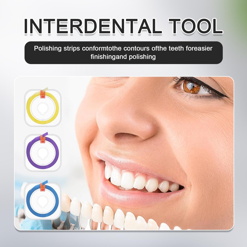 - Functional description: This sandpaper for teeth is particularly suitable for processing hard-to-reach interdental spaces and fillings. It can effectively grind, polish and shape. Compared to traditional fine grinding needles and similar tools, tooth sandpaper between teeth reduces damage to the gums and overstrain to better protect your oral health.