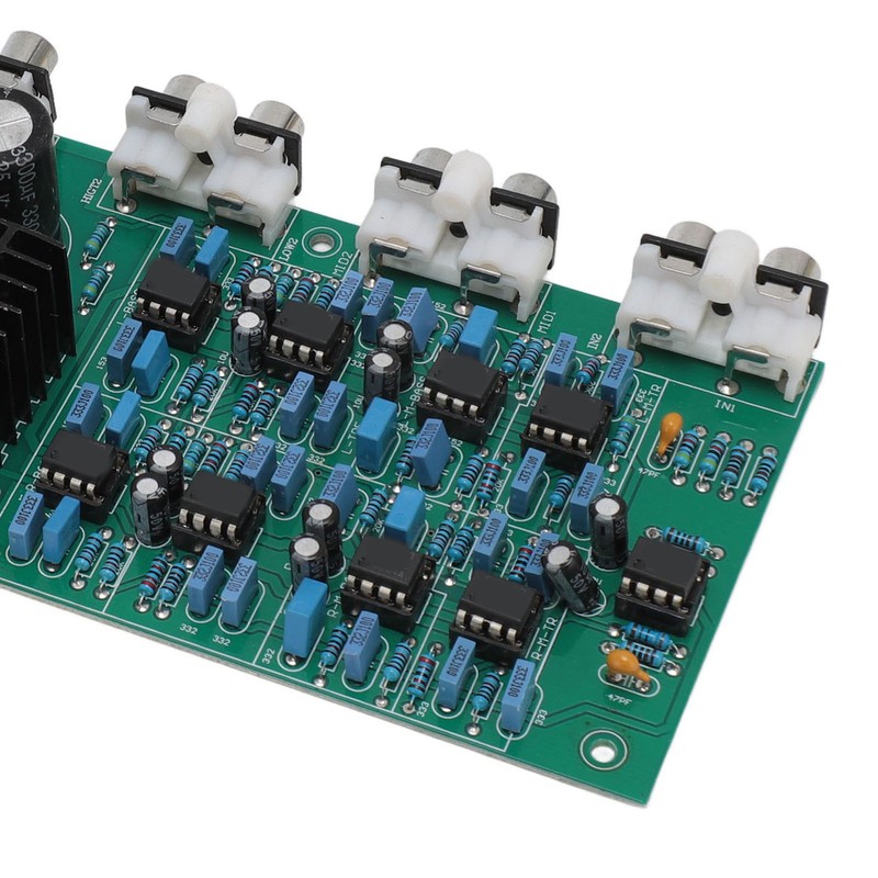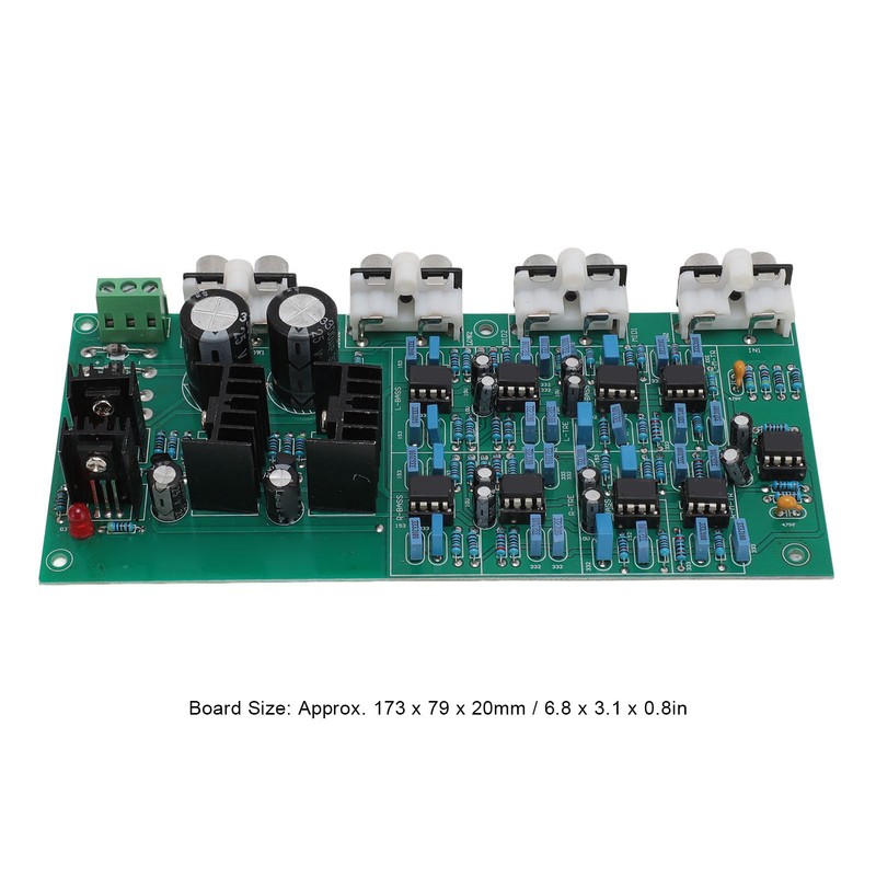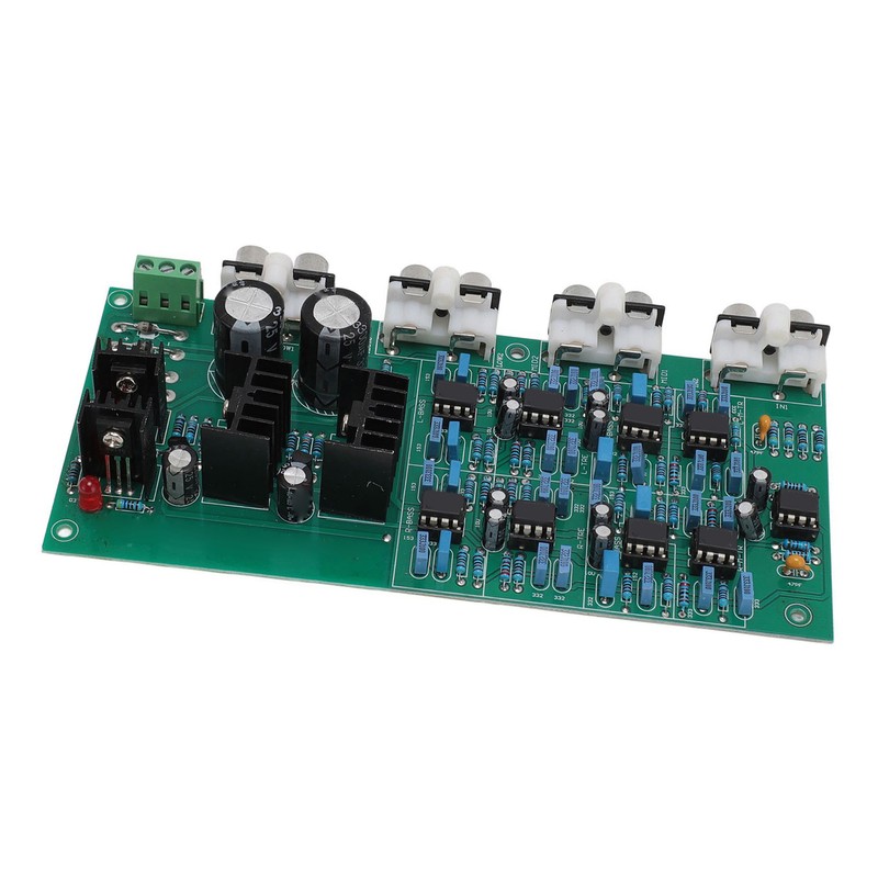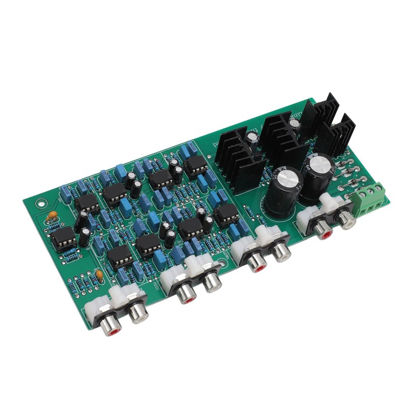 1、Stereo 6 Channel Output: This crossover board is set up as a stereo 6 channel output structure, input stereo left and right channel signals, output 6 channel signals, divided into left treble, left bass and right treble, right bass, left midrange, right midrange, you can directly promote the 6 channel amplifier circuit. 2、Features: Excellent crossover circuit, crossover frequency without peaks and valleys, crossover point is easy to set, 6 channel output is independently adjustable, perfect reproduction of the original sound color. 3、Crossover Point: 310HZ3.1KHZ (that is, 20HZ‑310HZ for bass output 310‑3.1HZ for the midrange output 3100‑20KHZ for treble output). Board structure, stereo six channel output, treble, bass, midrange. 4、Stable and Reliable: Speaker frequency divider adopts op amp chip E5532, which can improve performance and sound quality. Filter type for Linkwitz Rile filter. AC transformer power supply range dual 14 to dual 19V, stable and reliable power supply. 5、PCB Material: Speaker frequency divider crossover is made of PCB material, which is durable and has a long service life. Compact size, easy to install and save space.