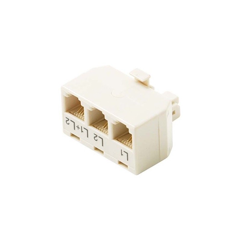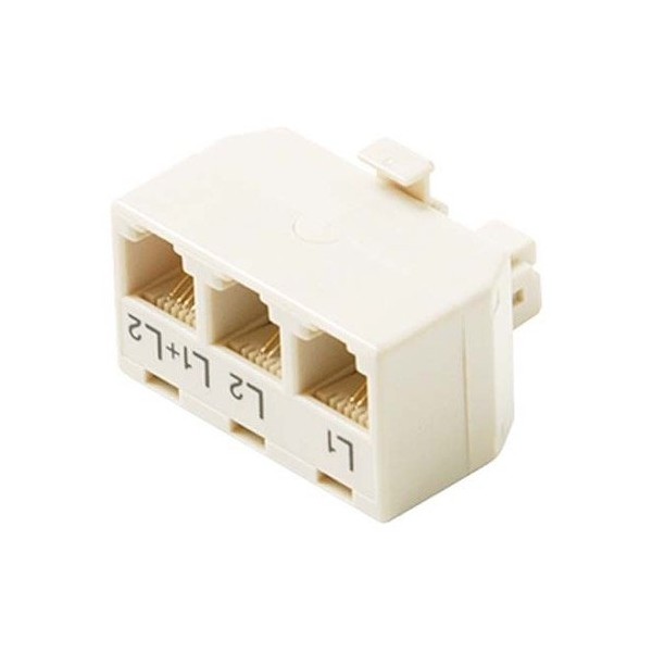 3 Way T Adapter 2 Line White Telephone Jack Splitter 6P4C 4 Conductor RJ11 Triplex Modular 4C Tee Jack 1 Line 6X2 2 Line 6X2 Line 1+2 6X4 Jack to 6X4 Plug UL
