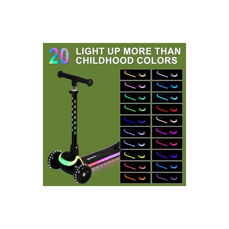 3-Wheel Light-Up Kids Scooter,Lights on Stem & Deck, 20 Different Black Base