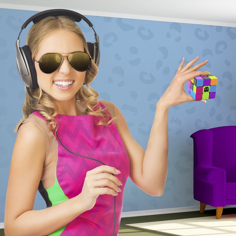 - RETRO 80s PUZZLE CUBE: The 80s Mod features radical neons with our classic stickerless construction. No sticky residue, no replacing faded, torn faces