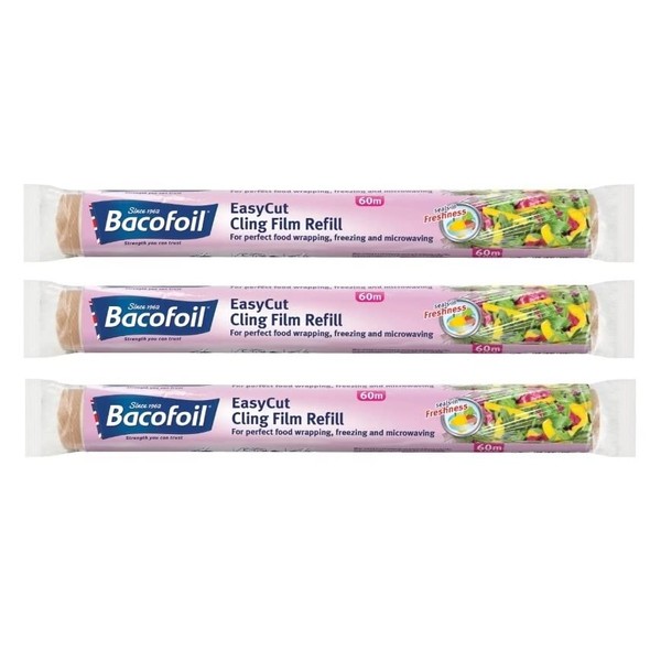 3 x EasyCut Cling Film Refill Rolls for Perfect Food Wrapping Freezing and Microwaving 35cm x 60m
