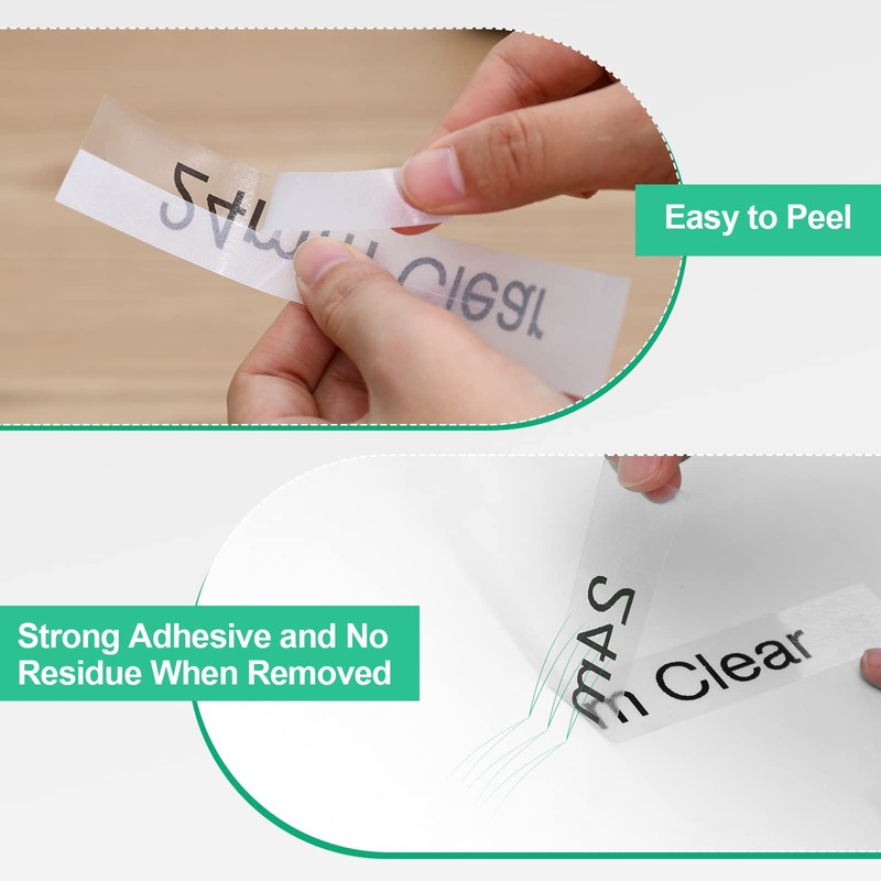 - Easy to peel. Use a special pressure-sensitive design. Due to the strong adhesion, the tze label tape can stick to any surface and no rubber remains after peeling. Due to thermal transfer printing technology, the label text will not stain or wipe or fade.