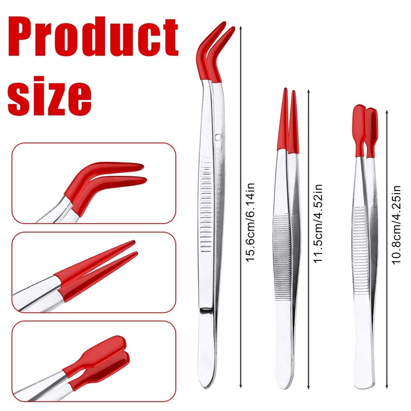 - Package contents: you will receive 3 tweezers with rubber tip in 3 styles, including 1 piece fine point tweezers, 1 piece flat tip tweezers and 1 long, curved tweezers. Sufficient quantity and styles meet your daily use.