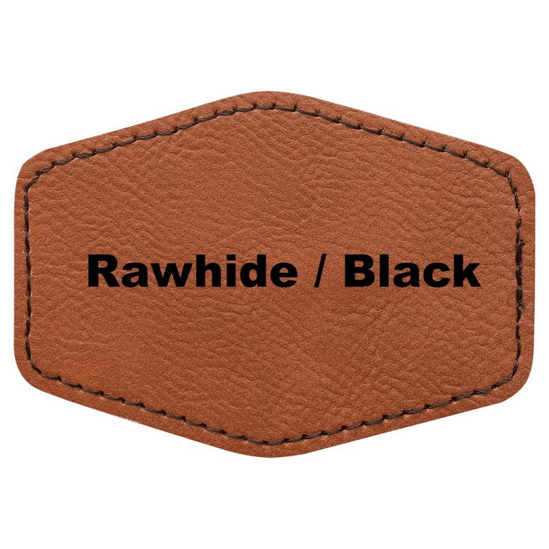 3"x2" Hexagon Blank Laserable Leatherette Hat Patches with Adhesive Faux Leather Patches for Hats Custom Fabric Repair Sew Laser Supplies (Rawhide/Black, 25)