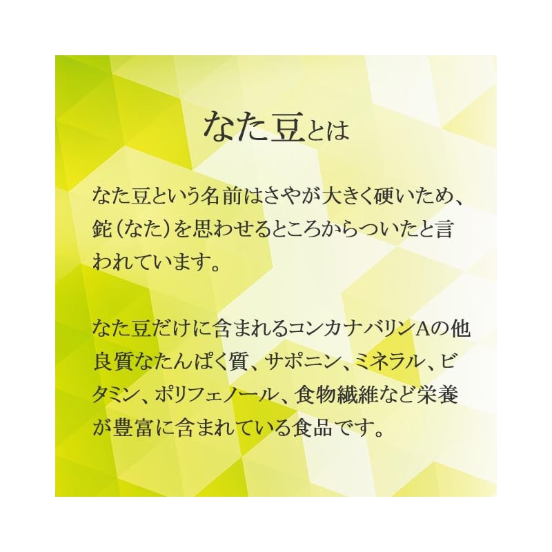 - なた豆は良質なタンパク質、サポニン、鉄分、ミネラル、ビタミン、ポリフェノール、食物繊維などを含む栄養価に富んだ食品です。歯磨き粉などに含まれる成分としても人気です。