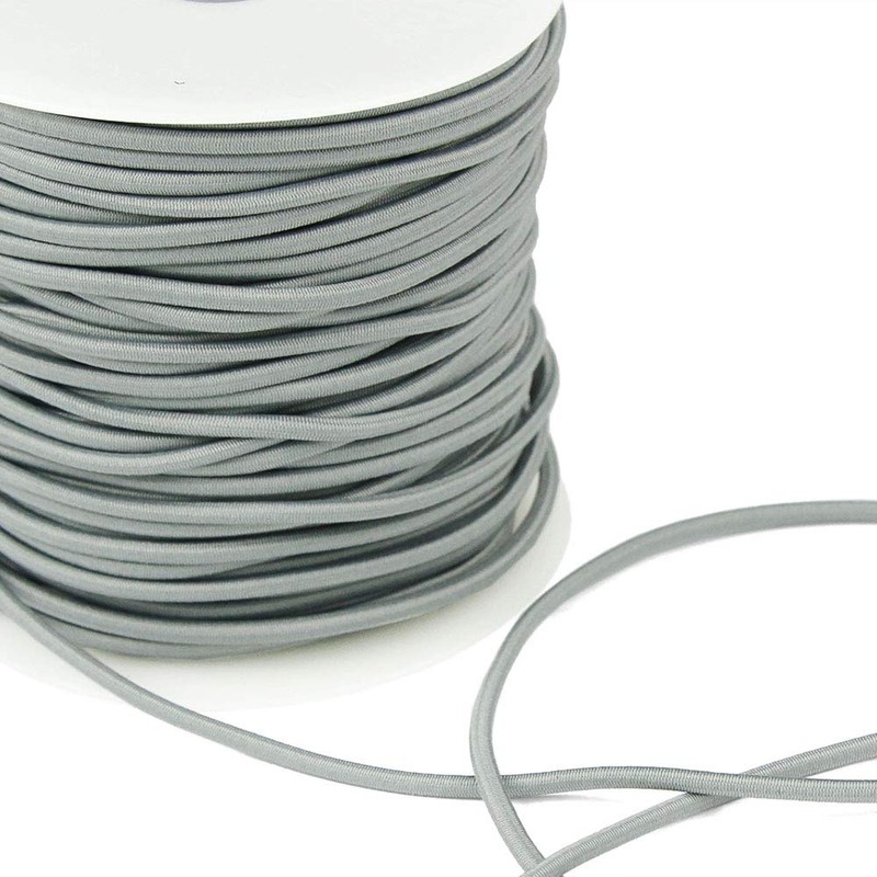 3 Yards of REILLY 3mm Round Elastic Cord, Silver Gray