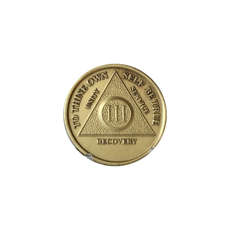 3 Year AA Medallion Traditional Bronze Raised Center Sobriety Chip