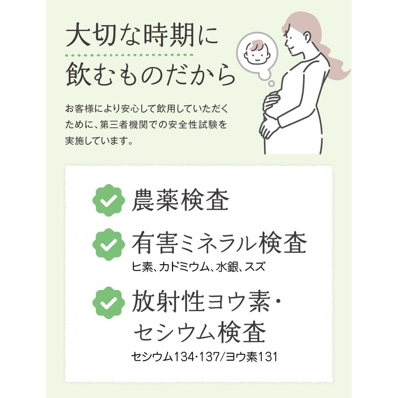 - 香料・着色料・保存料不使用、安心してお飲みいただくために第三者機関での安全性試験をクリアしています