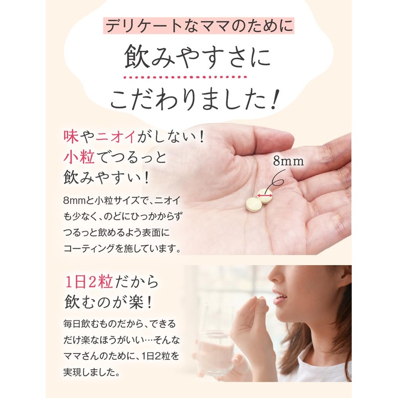 - 1日2粒の味やニオイがしない小粒タイプ。デリケートなママのために飲みやすさにこだわりました