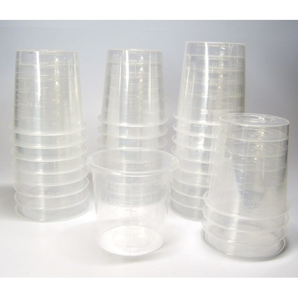 - Qty 30 2 oz Clear Plastic (PP) Cups with Graduated Markings