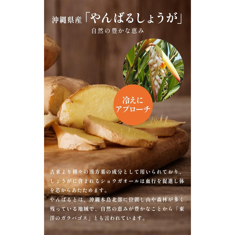 - ✨自然の豊かな力に恵まれた沖縄県産「やんばるしょうが」によるポカポカの力。しょうがの力で、ポカポカ新習慣を初めてみませんか。