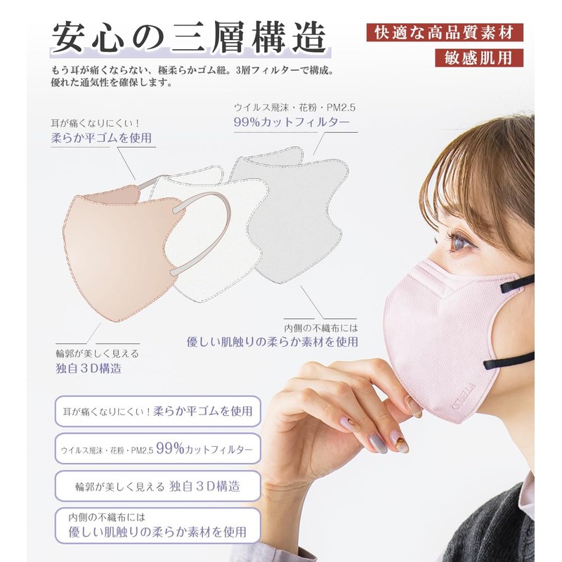 [CICIBELLA] マスク 30枚入り不織布 3dマスク バイカラー 立体マスク 小さめ 使い捨て カラーマスク 1箱 5D (30枚, アソートボックスA)