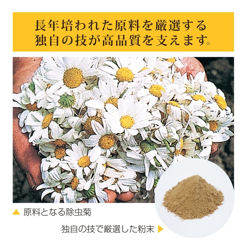 • Mosquito repellent incense that uses natural insect repellent chrysanthemum at high concentrations: This product uses natural insect repellent chrysanthemum. The natural insect repellent pyretrin, diffuses into the air to repel mosquitoes. Quasi-drug for repelling and unscented and colorless