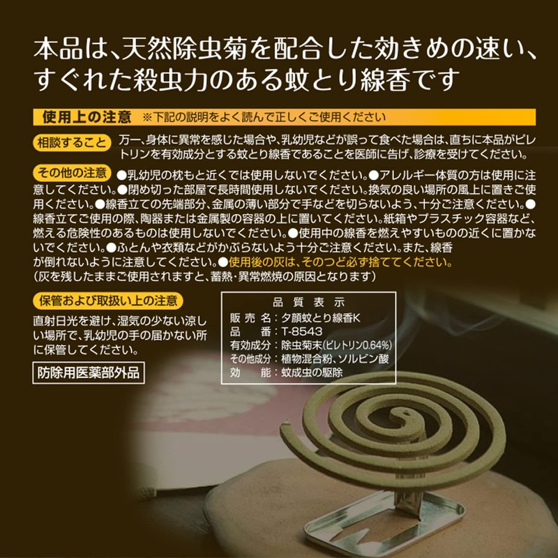 紀陽除虫菊 夕顔プレミアム 天然蚊取り線香 ( 30巻 / 線香立て具入り ) 国産 天然成分 ( 防除用医薬部外品 ) 自宅 屋外 アウトドア 殺虫 箱