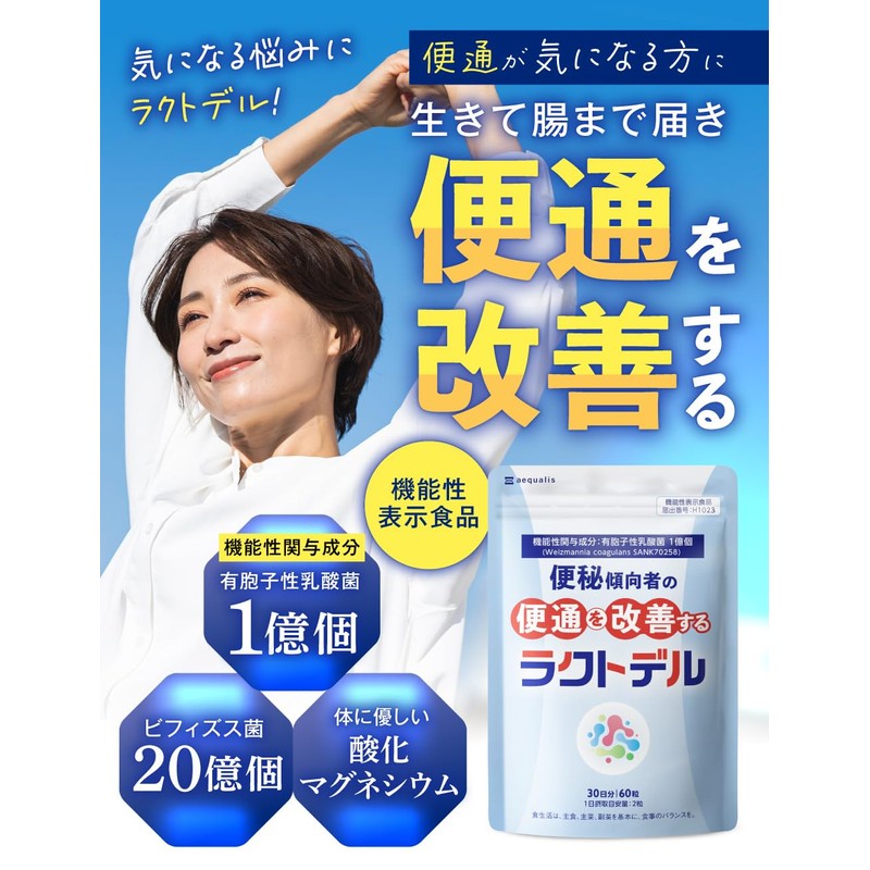 ラクトデル 便通を改善する 乳酸菌サプリメント 機能性表示食品 ビフィズス菌 酸化マグネシウム 30日分