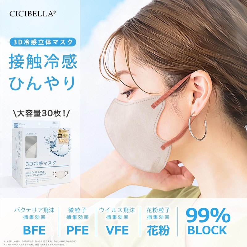 [シシベラ] 立体マスク バイカラー 不織布 冷感マスク 小顔 肌に優しい 使い捨てマスク 30枚 普通サイズ オールドレース