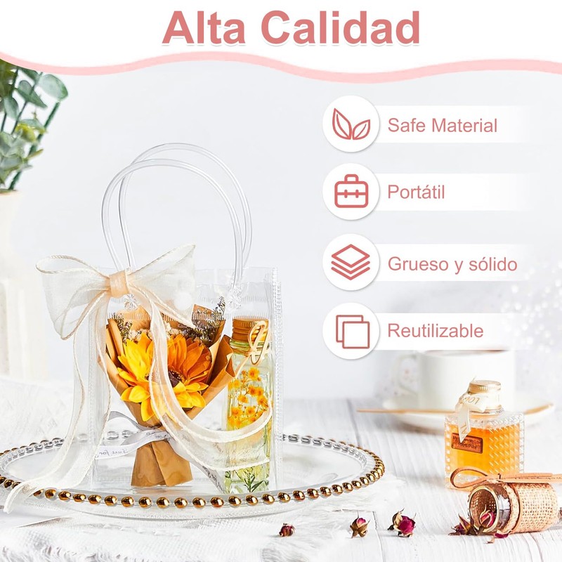 - Material de Alta Calidad: ANNIEMOOM Bolsas regalo transparentes están hecho de plástico PVC de alta calidad, impermeables, fuertes, reutilizables, y una excelente capacidad de carga para soportar fácilmente una gran variedad de pesos, perfecta para exponer tus regalos y guardar tus artículos.