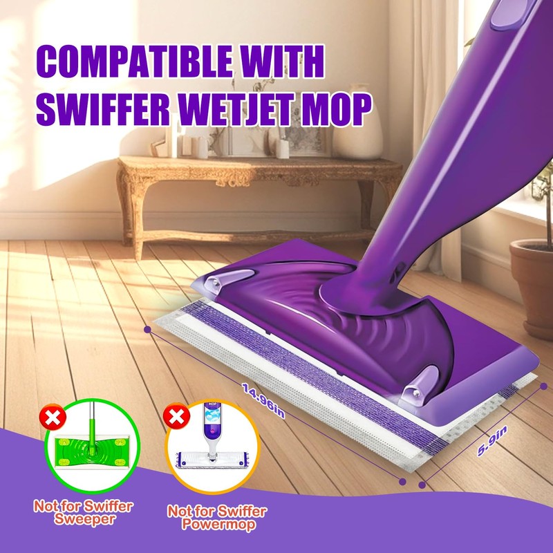 - Perfectly Suited for Swiffer Wet Jet Spray Mop: Our disposable mopping pads are designed specifically for Swiffer WetJet mop, precision cuttin, these pads refill for swiffer wetjet ensure a perfect fit every time(Measuring 11.6 " x 5.9 ", 30 Count)