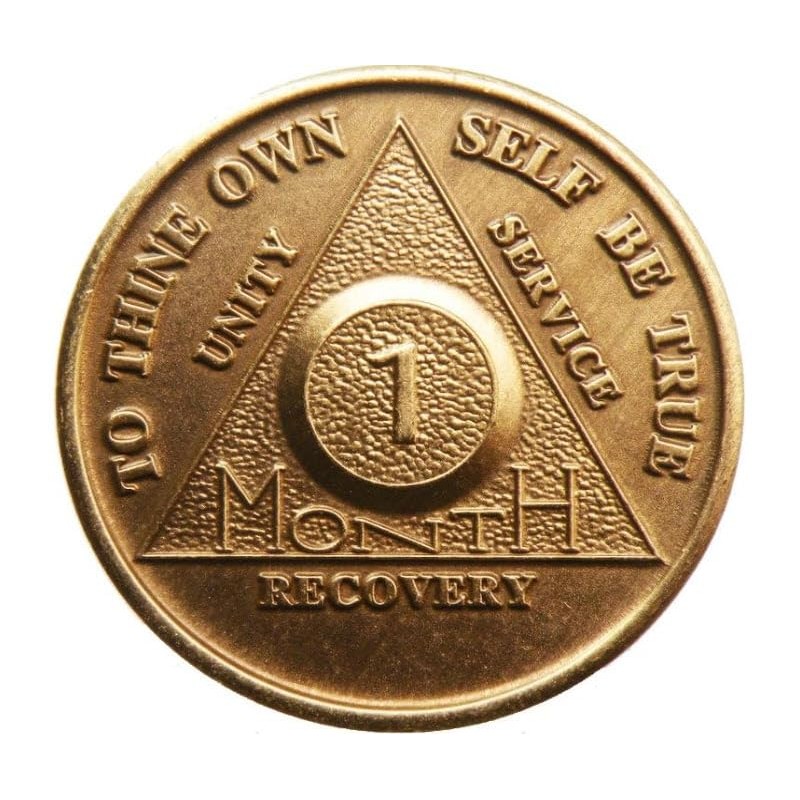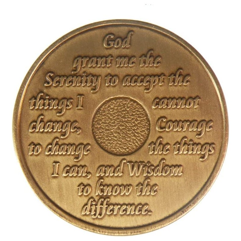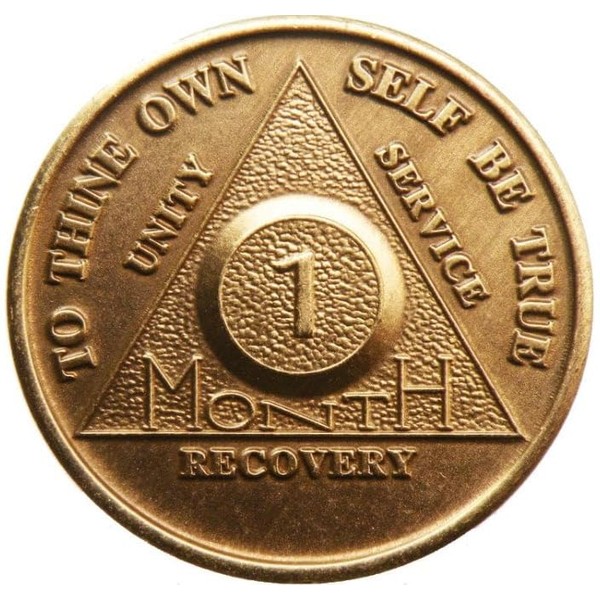 30 Day 1 Month AA Anniversary Chip This is the Traditional Style Medallion often given in meetings of Alcoholics Anonymous. It is 34x2mm in size and has the Serenity Prayer Back