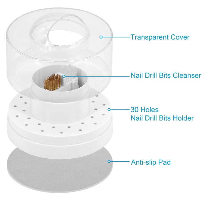 - 【Beautiful Transparent Cover】The cover is made of high quality acrylic which is more transparent and beautiful. You can display the nail drills bits while they are being covered.