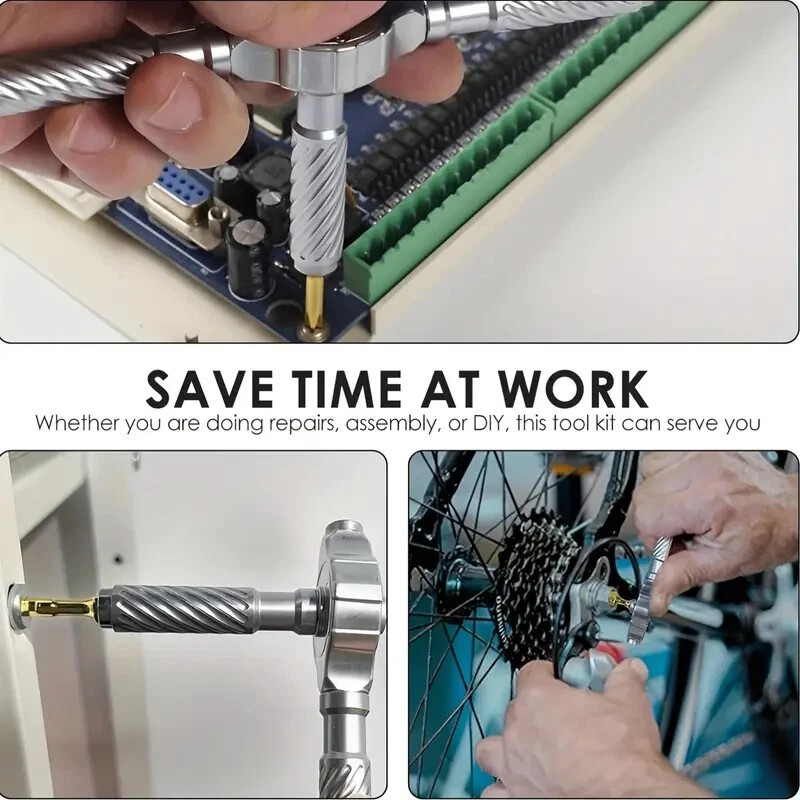 Its ergonomic design and non-slip grip reduce wrist fatigue by up to 70%, making it suitable for extended use in applications such as computer repair, bicycle maintenance, or household appliance servicing.