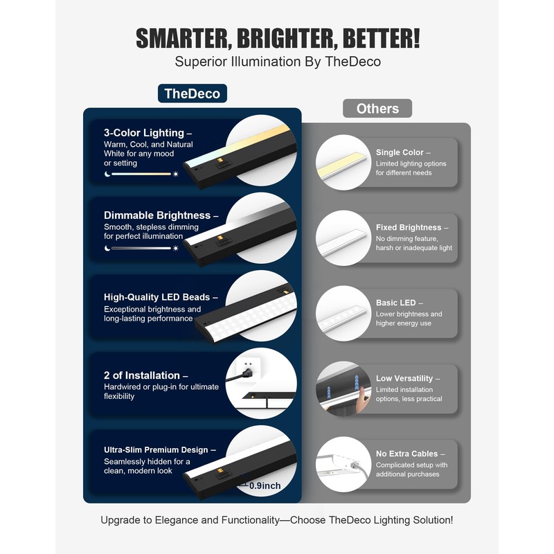 - Premium Features: Exchange cord clutter for the neat aesthetic of Plug-in cables. And also our cabinet lighting meets the stringent requirements of energy efficiency, safety and reliability
