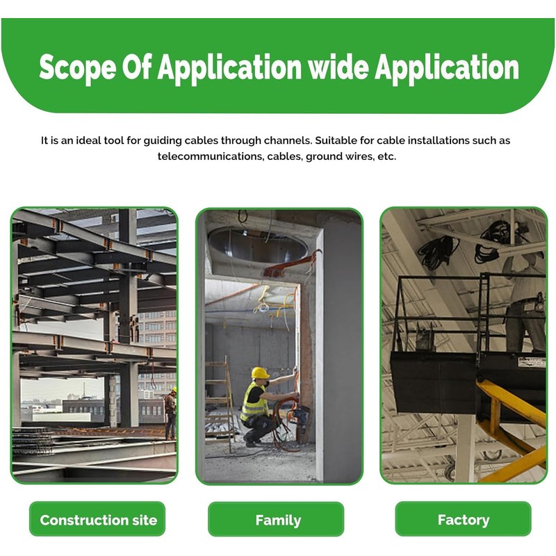 - 360° available head wheel: the head wheel at the end of the steel wire is available 360° and can be easily driven through the curves. And the unique connection method makes it durable and comfortable. It is an ideal tool to guide the cable through the channel.